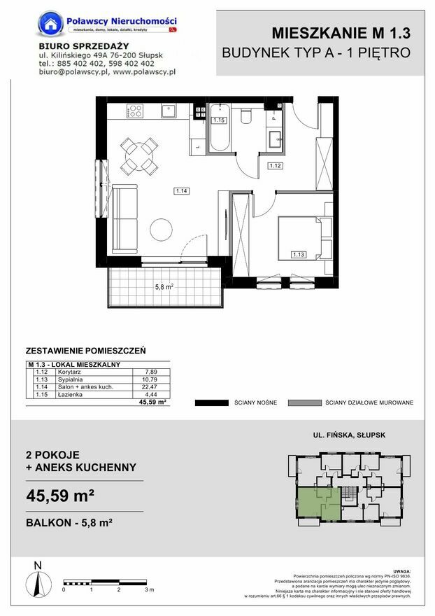 - Powierzchnia:45,59 m2