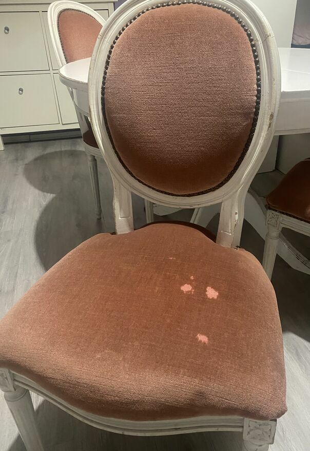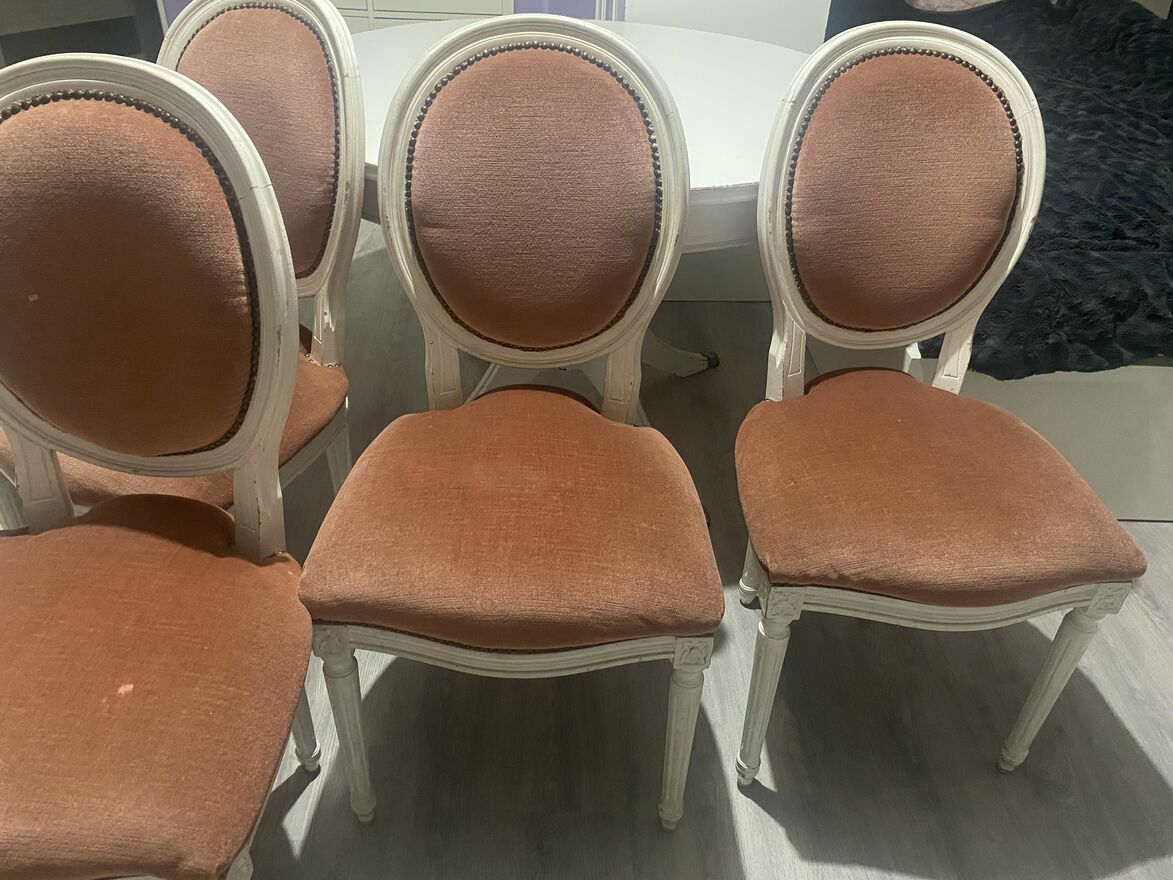 Wymagają odświeżenia, renowacji dlatego cena niska jak na takie krzesła. Jedno krzesło na ostatnim zdjęciu stan taki jak widać.
