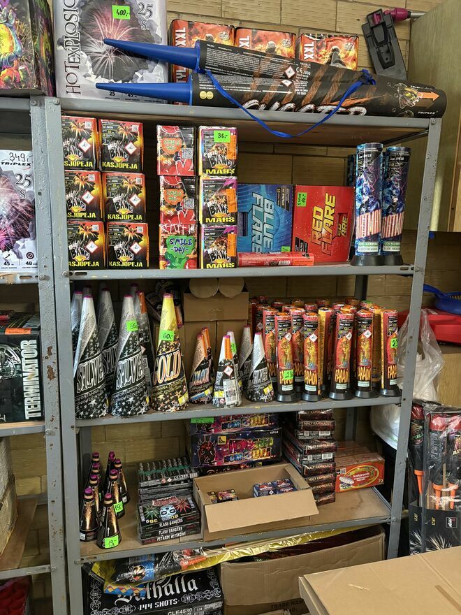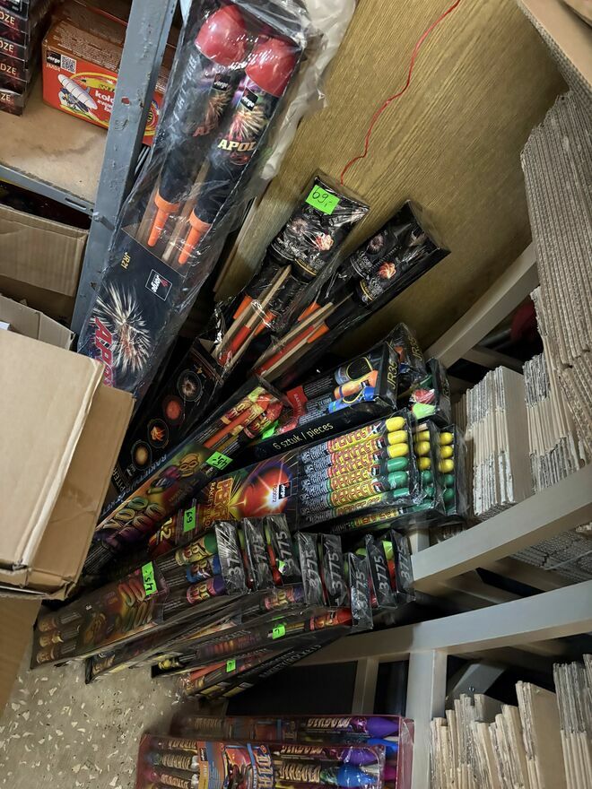 rakiety, baterie fajerwerków, rzymskie ognie, petardy, fontanny i zimne ognie.