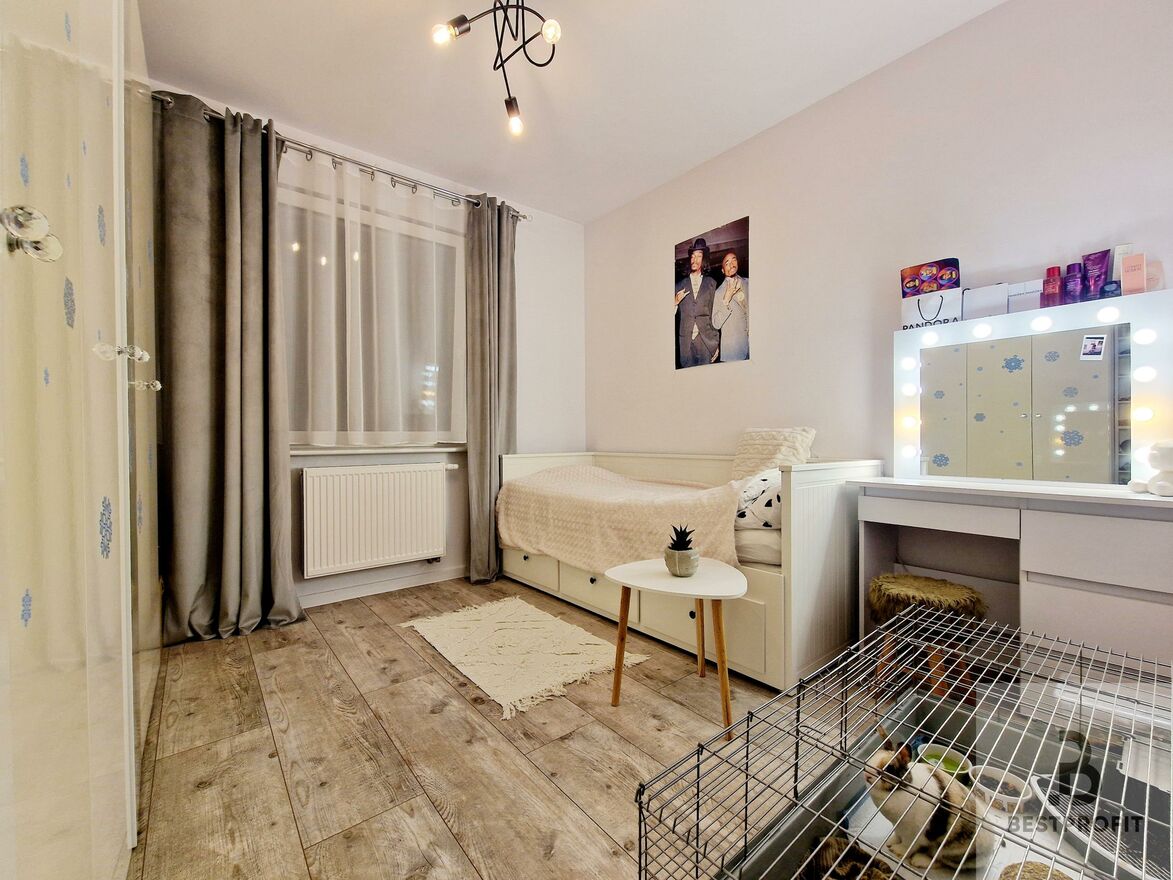 Układ: 3 sypialnie, przestronny salon z aneksem kuchennym, łazienka, wiatrołap