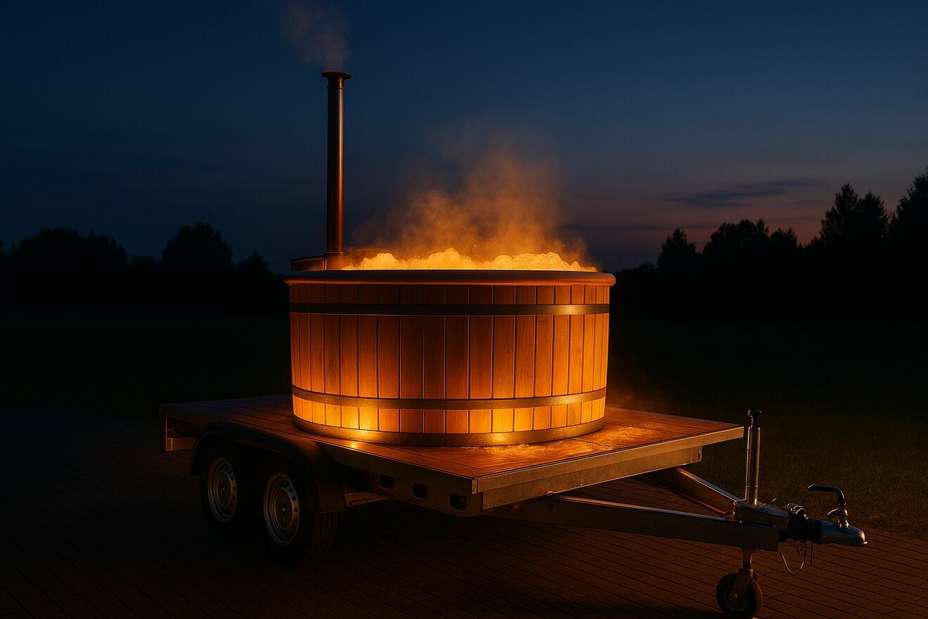 Mamy coś dla Ciebie! Wynajmij mobilną balię opalaną drewnem – gotową do użycia, przywozimy ją prosto pod Twój dom, działkę lub nad jezioro!