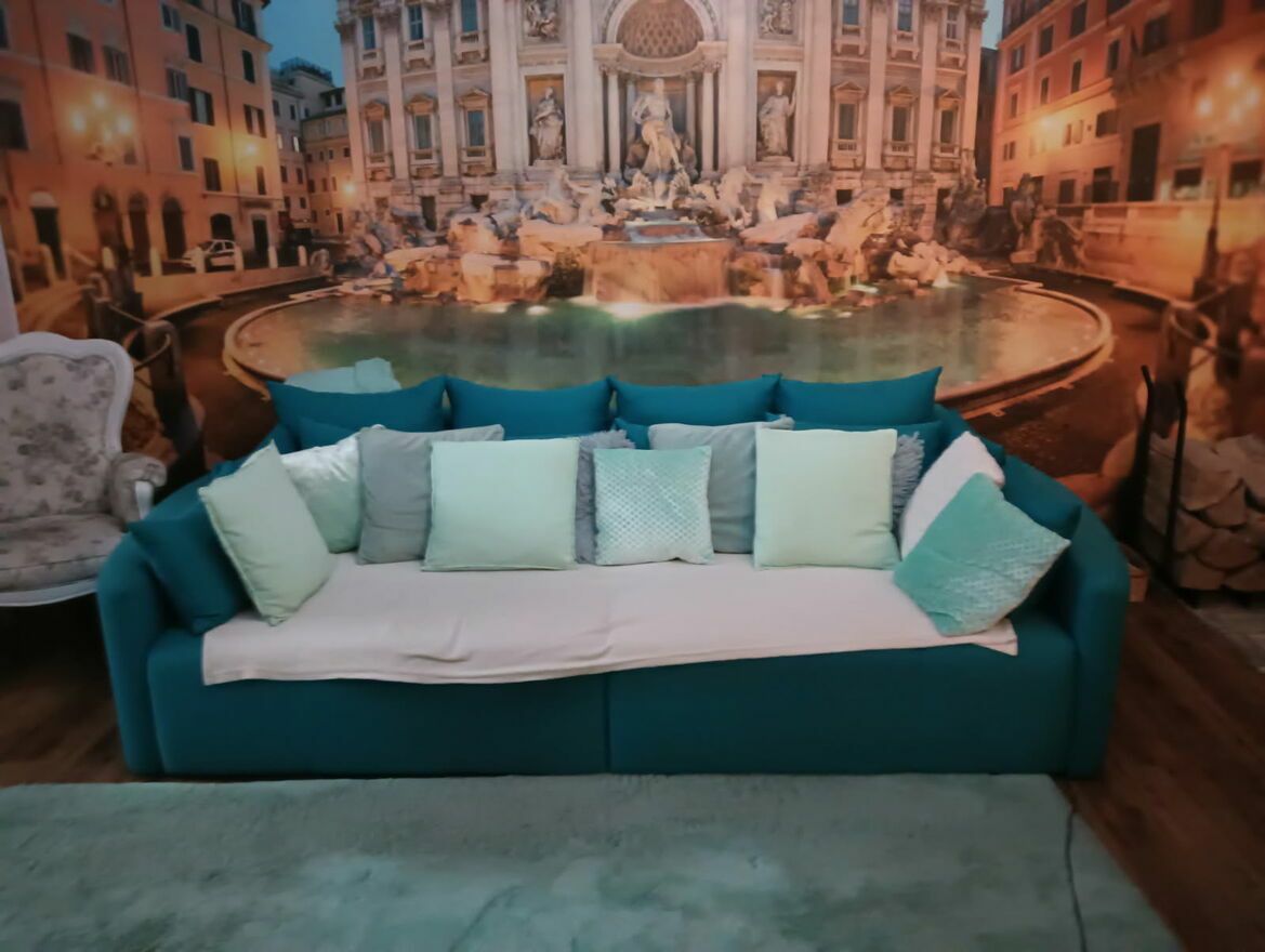 Duża, czteromiejscowa sofa z kolekcji Agata Meble. Mebel w pięknym, soczystym kolorze turkusowym, z dekoracyjnymi poduszkami w pastelowych odcieniach. Sofa prezentuje się elegancko i stylowo, doskonale wpisując się w aranżację nowoczesnych wnętrz.Sofa posiada wygodne, miękkie siedzisko i oparcie, a także funkcję rozkładania, dzięki której można z niej stworzyć wygodne miejsce do spania. Mebel wykonany z wysokiej jakości materiałów, w modnym kolorze turkusowym. Idealna do salonu lub sypialni.