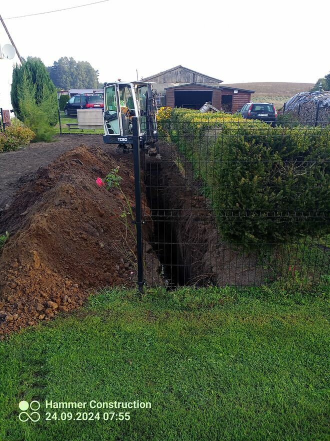 - wykopy pod instalacje (woda, kanalizacja, prąd)